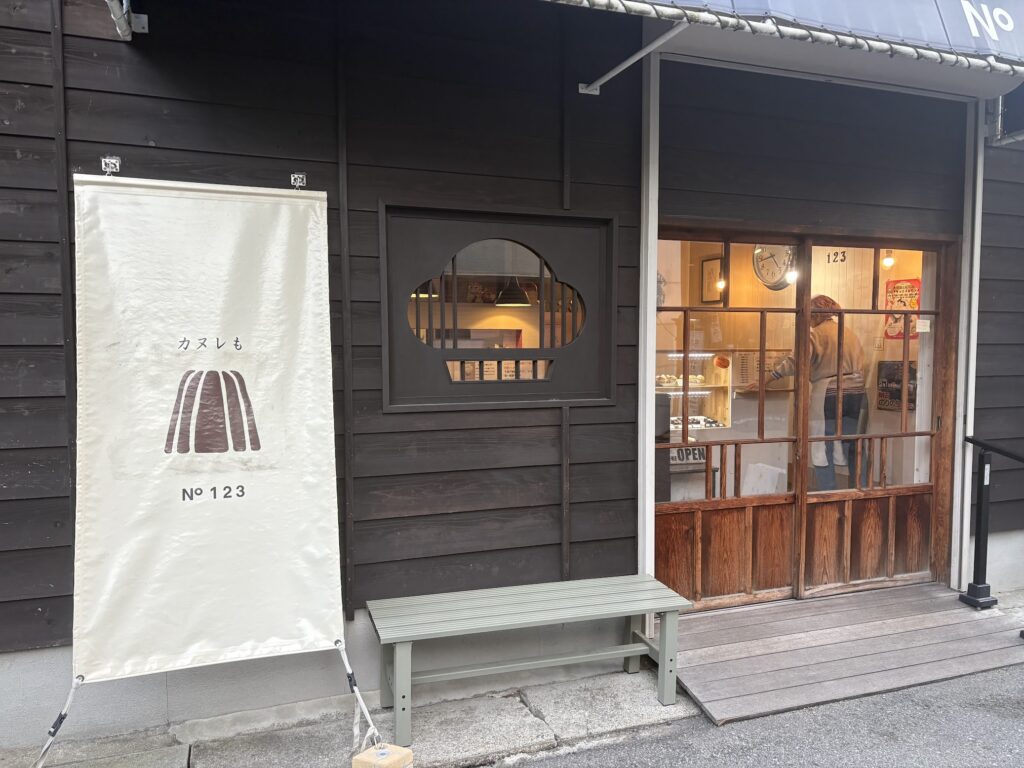 お店を出て撮影させていただきました♡ガラス越しに見えるところには、先述のショーケース。カヌレが上品に並んでおります!